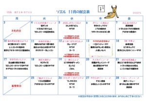 11月の献立が完成したので皆さんにご紹介させていただきます🙇
