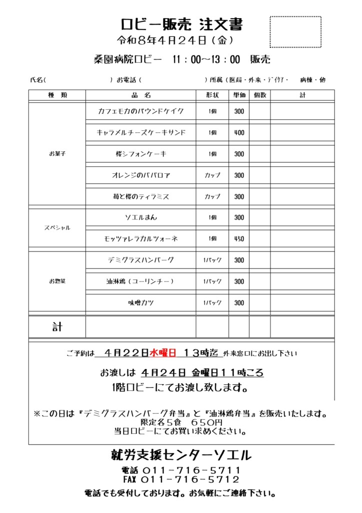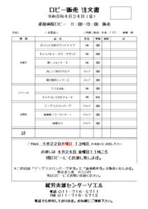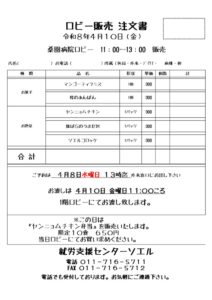 - ロビー販売のお知らせ